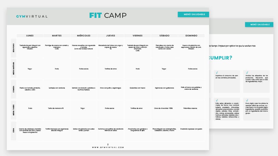 - Un menú saludable de 7 días en versión básica, vegana y vegetariana