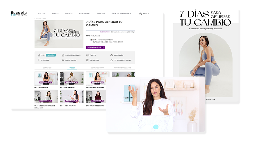 En este dossier vas a tener todo el contenido que necesitas para generar tu cambio. Verás que tienes todo el contenido dividido por días, con una mini explicación y un recuadro con la imagen. Si pinchas allí, te llevará directamente al enlace de la masterclass, entrenamiento o directo en cuestión.